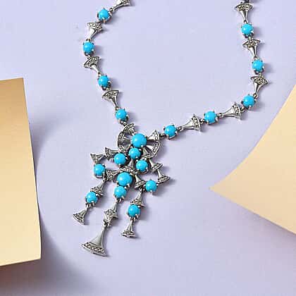 If you are a fashion-forward woman looking for an eye-catching ornament to complement your sophisticated style, the Arizona Sleeping Beauty Turquoise and Natural Cambodian Zircon Necklace is the right pick for you. This breathtaking necklace features multiple strands of exquisite gemstones, including 32 turquoise stones and 1 natural Cambodian zircon in a polished silver setting. Experience the tranquillity of blue turquoise with this exotic piece of jewellery.