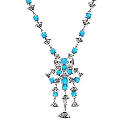 Arizona Sleeping Beauty Turquoise and Natural Zircon Necklace (Size - 20) in Platinum Overlay Sterling Silver 10.31 Ct, Silver Wt. 19.00 Gms