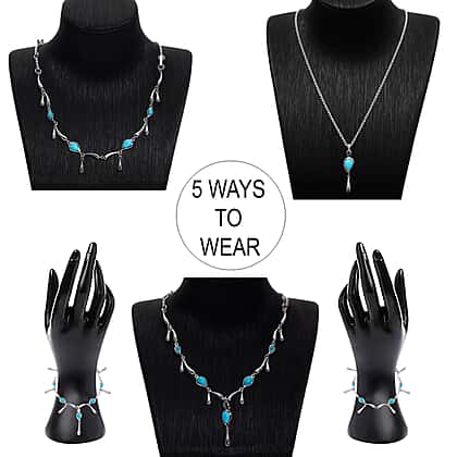 Lucy Q Raindrop Collection - 4 in 1 Arizona Sleeping Beauty Turquoise Detechable Pendant with Chain (Size 16) in Rhodium Overlay Sterling Silver.