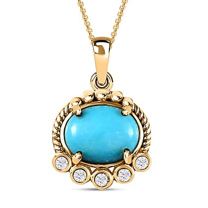 Arizona Sleeping Beauty Turquoise & Natural Zircon Pendant with Chain (Size 20) in 18K Yellow Gold Vermeil Plated Sterling Silver 2.08 Ct.