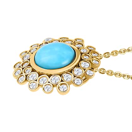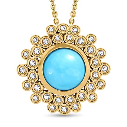 Arizona Sleeping Beauty Turquoise & Natural Zircon Pendant with Chain (Size 20) in 18K Yellow Gold Vermeil Plated Sterling Silver 2.44 Ct.