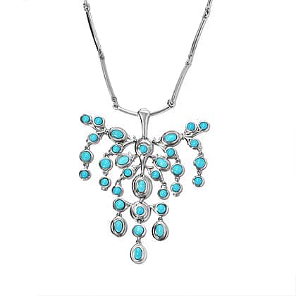 This Arizona Sleeping Beauty turquoise pendant is all you need to make heads turn around with its mesmerising beauty and colour. This set is made form 925 sterling silver with a platinum overlay and features elongated bar link chain secured with a lobster clasp fastening. The pendant is decorated with oval and round gemstones bezel set in the frame creating a unique design. You can pair this set with turquoise earrings by TJC collection to complete the look.