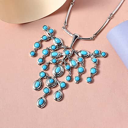 Arizona Sleeping Beauty Turquoise Necklace (Size - 20 with Extender) in Platinum Overlay Sterling Silver 12.413 Ct, Silver Wt. 33.70 Gms