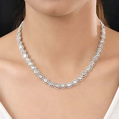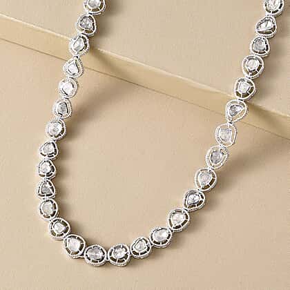 Artisan Crafted 3 Polki Carat Diamond Necklace (Size - 16 and 4 Inch Extender) in Platinum Overlay Sterling Silver 3.00 Ct, Silver Wt. 19.47 Gms