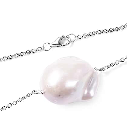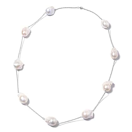 Baroque Pearl Station Necklace (Size 30) in Rhodium Overlay Sterling Silver, Silver wt. 6.07 Gms