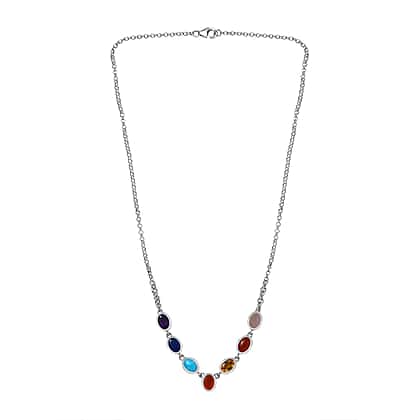 Carnelian and Multi-Gemstone Fancy Necklace in Rhodium-Plated Sterling Silver (Size 20) 8.59 ct