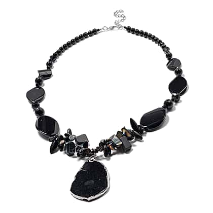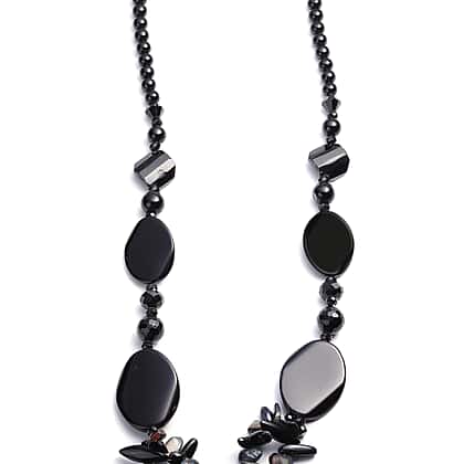 Black Agate, Black Quartzite, Simulated Black Spinel and Black Shell Necklace (Size 28 with 3 inch Extender)