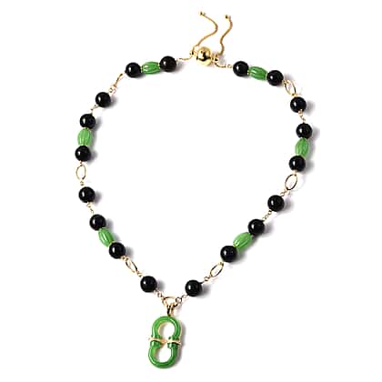 Black and Green Jadeite Jade Adjustable Necklace (Size 20) with Removable Pendant and Magentic Lock in Yellow Gold Overlay Sterling Silver 204.75 Ct.