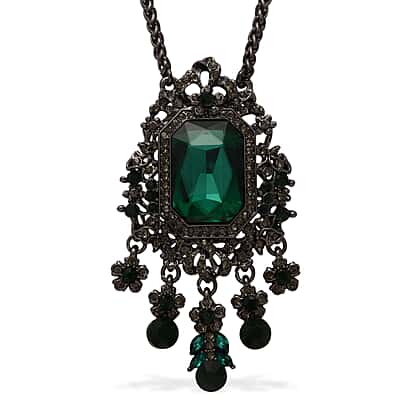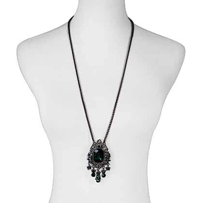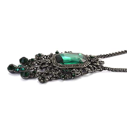 Black & Green Crystal Necklace (Size - 24-2) in Black Tone