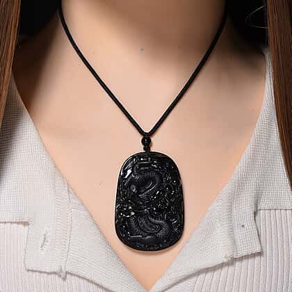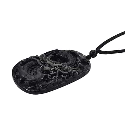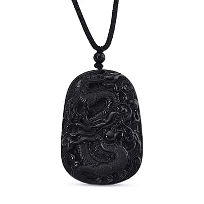 Black Jade Dragon Necklace with Black Cotton Thread (Size 30 Adjustable) 125.00 Ct.