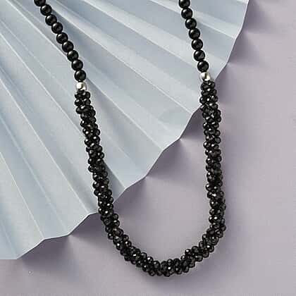 Black Spinel and Quartzite Necklace (Size - 20) in Sterling Silver