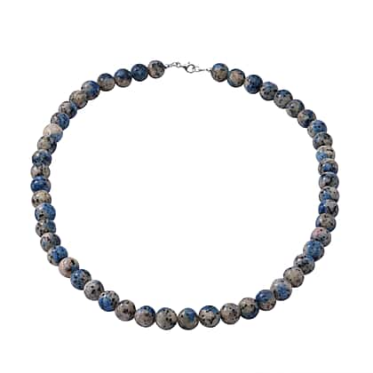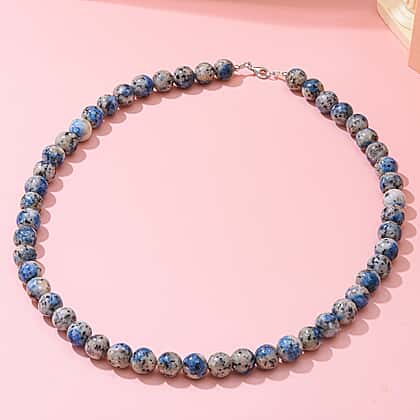 This blue azurite granite necklace is a simple and artistic representation of beauty with simplicity. The beaded style necklace is put together with a durable thread and secured with a lobster claw clasp in rhodium overlay sterling silver, making it more resilient and durable. Now flaunt each look with one of the most pious stones known to humankind on every occasion. This 20-inch long necklace is the perfect stress-relieving and mood-boosting gift.