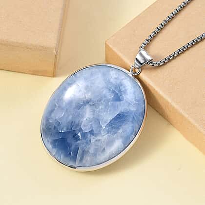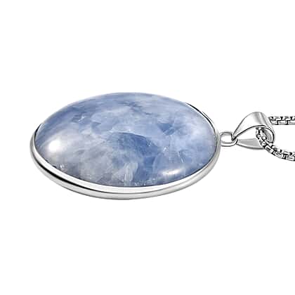 Blue Chalcedony Enhanced Pendant with Chain (Size 20) Stainless Steel 200.000 Ct.