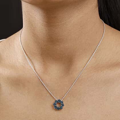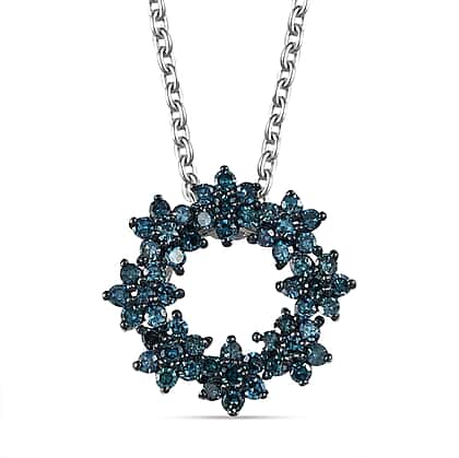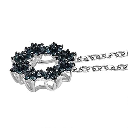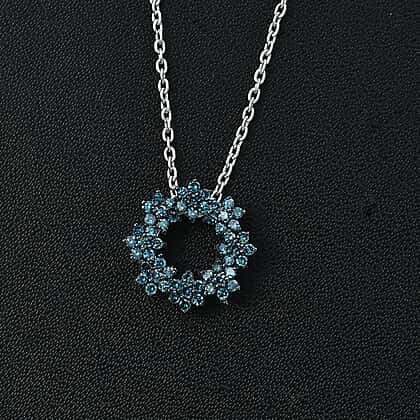 Blue Diamond Pendant with Chain (Size 20) in Rhodium Overlay Sterling Silver 0.49 Ct.