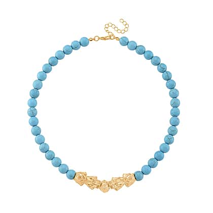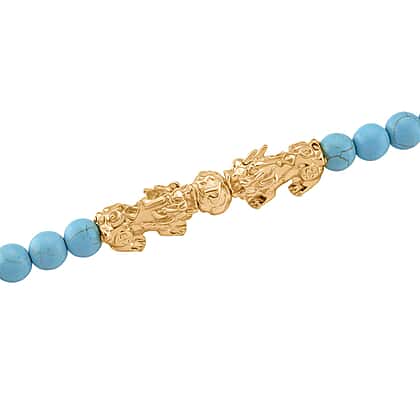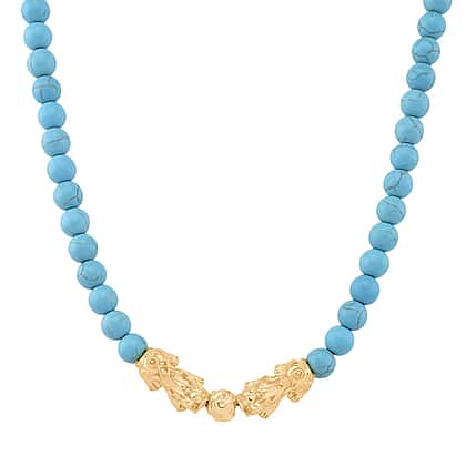 Blue Howlite Beads & Pixiu Necklace (Size 18 - 2 Ext) in Yellow Gold Plated 330.00 Ct.