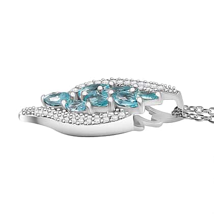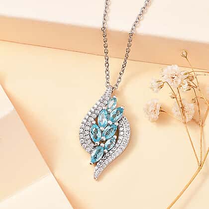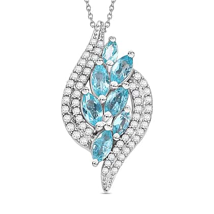 Blue Lagoon Apatite, White Zircon Pendant with Chain (Size 20) in Rhodium Plated Sterling Silver