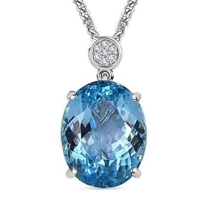 A captivating Blue Topaz takes centre stage in this pendant fashioned from sterling silver. Its serene blue hue brings calm and tranquillity to your everyday dressing. The Blue Topaz hangs from a bail studded with cluster-set sparkling Natural Zircons. Crafted with precision and attention to detail, the pendant's setting and bail are clothed in a platinum overlay, a metal known for its durability and luxurious shine. The pendant is accompanied by a 20-inch chain.