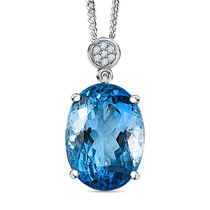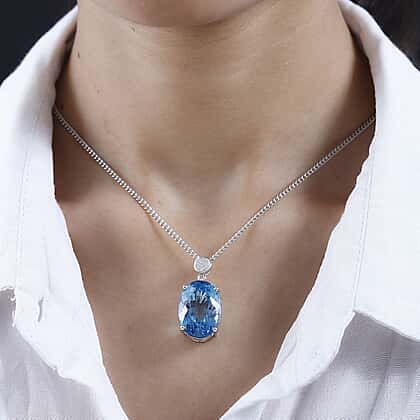 Blue Topaz & Natural Zircon Pendant with Chain (Size 20) in Platinum Overlay Sterling Silver 32.60 Ct, Silver Wt. 7.00 Gms