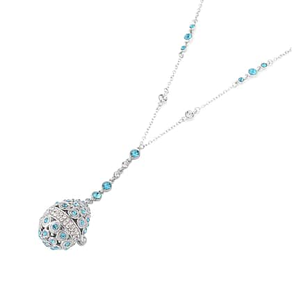 Blue and White Austrian Crystal Necklace (Size - 24) in Silver Tone