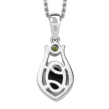 Boulder Opal Triplet, Natural Chrome Diopside Pendant with Chain (Size 20) in Rhodium Overlay Sterling Silver, 1.040 Ct.