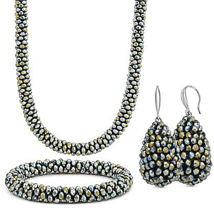 Bundle Deal Designer Inspired Magic Colour Crystal Necklace, Earrings & Bracelet Set