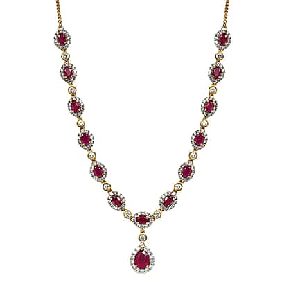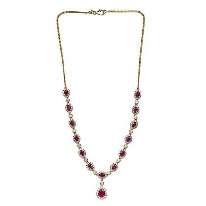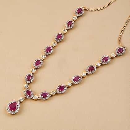 Cabo Delgado Ruby and Natural Cambodian Zircon Necklace (Size - 18) in 18K Vermeil Yellow Gold Overlay Sterling Silver 19.85 Ct, Silver Wt. 16.50 Gms