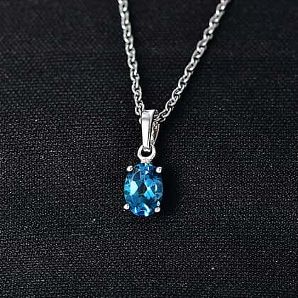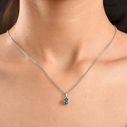 Certified London Blue Topaz Pendant with Chain (Size - 20) in Platinum Overlay Sterling Silver