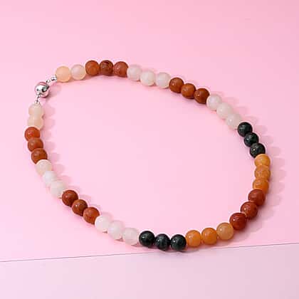 The summer colours of the Natural Rainbow Jadeites find their way into this vibrant necklace with a sterling silver magnetic clasp. The multi-coloured rainbow jadeite necklace has 43 balls stringed together to create the look of a bead necklace. With a weight of 500 Carat, it lends a very bold and stylish look. It has a length of 20 inches which highlights your neck and the dress you are pairing it with.
