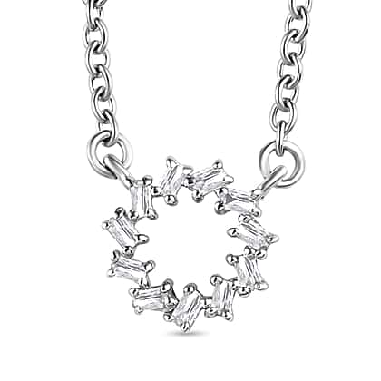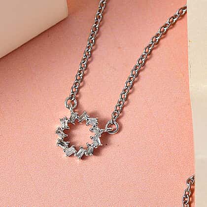 Circle of Life Diamond Necklace (Size - 20) in Platinum Overlay Sterling Silver and Stainless Steel.