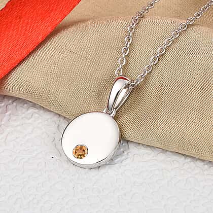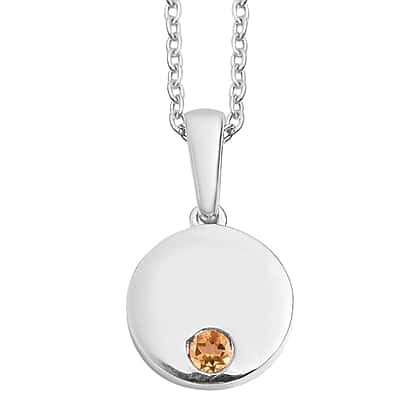 Citrine Pendant with Chain Size 18 in Platinum Plated Sterling Silver