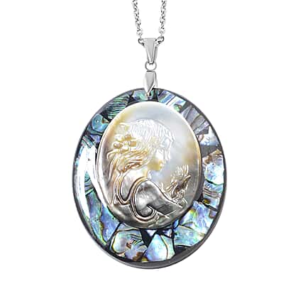 CLose Out Abalone Shell Cameo & Alexandrite Pendant with Chain (Size 24) 4.51 Ct.