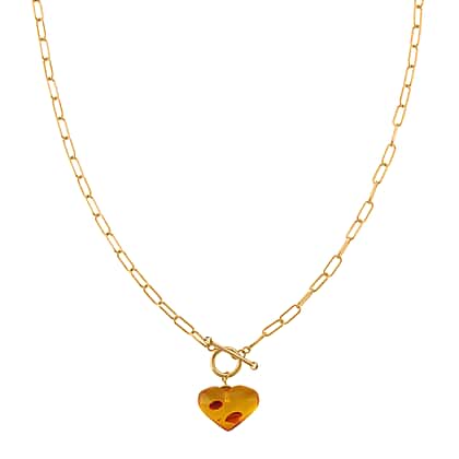Close Out Deal- Heart Shape Amber Necklace (Size 20) with T-Bar Clasp in Yellow Gold Overlay Sterling Silver