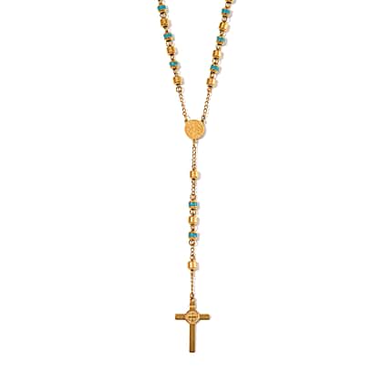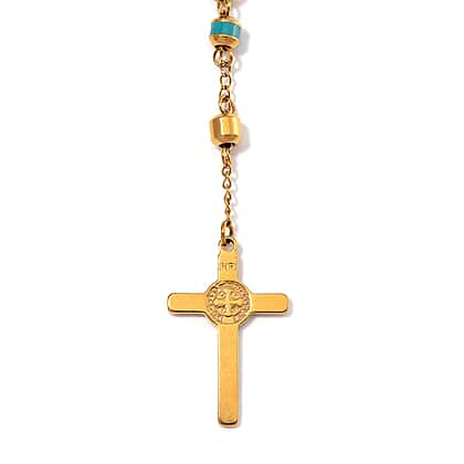- The vibrant blue enamel Adds depth to the Rosary Necklace