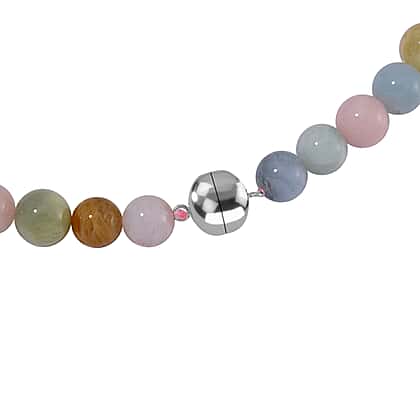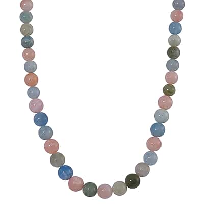 This Multi Beryl (Aquamarine, Morganite) Bead Necklace showcases a symphony of colours, complete with a glistening Rhodium Overlay Sterling Silver clasp. The multi-coloured beryl beads showcase a blend of cool hues ranging from pink, peach, and green to blue. To add to its individuality, each bead also boasts a unique pattern, creating a distinctive necklace in Size 20.