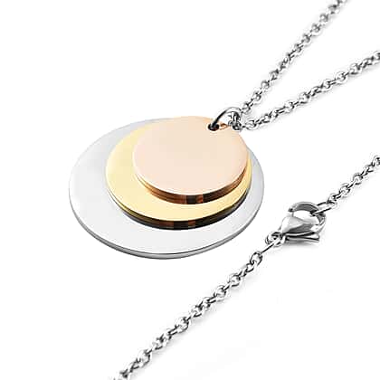 Triple Tone Round Charm Pendant with Chain in Silver Tone