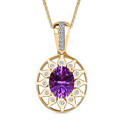 Concave Cut African Amethyst & White Zircon Pendant with Chain (Size - 20) in 18K Vermeil Yellow Gold Plated Sterling Silver 2.76 Ct