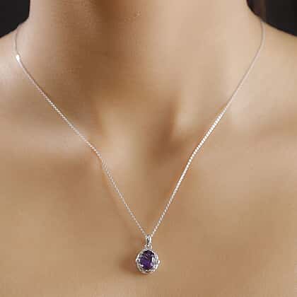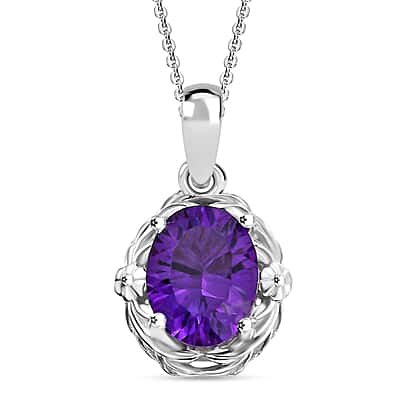 Concave Cut Zambian Amethyst Pendant with Chain (Size 20) in Rhodium Overlay Sterling Silver 1.79 Ct.