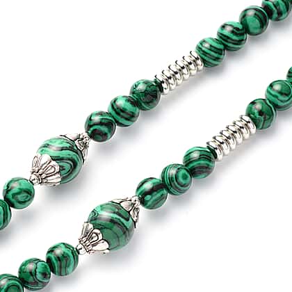 Created Malachite Beads Necklace (Size - 24) with Magnetic Lock in Silver Tone 265.00 Ct.