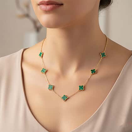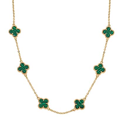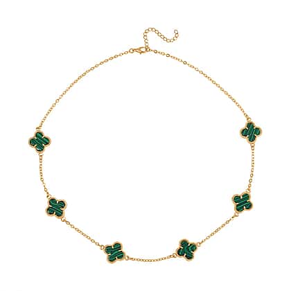 Created Malachite Plum Blossom Necklace (Size - 20-2 EXT) in Yellow Gold Tone 12.00 Ct.