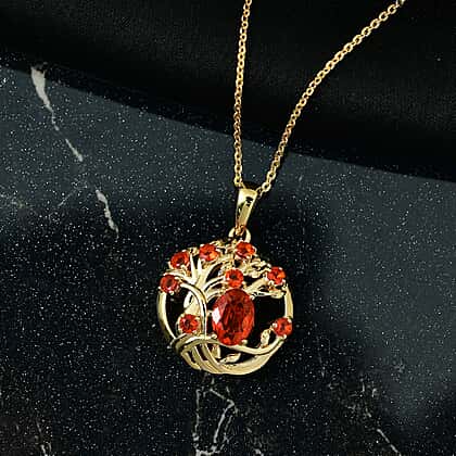D'joy Crimson Fire Opal Tree of Life Pendant with Chain (Size 20) in Yellow Gold Overlay Sterling Silver