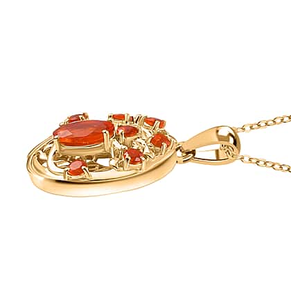 Crimson Fire Opal Pendant with Chain (Size 20) in Yellow Gold Overlay Sterling Silver