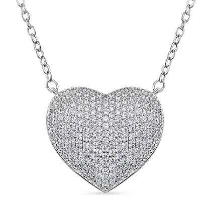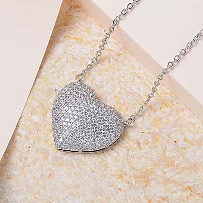 Cubic Zirconia Heart Necklace (Size - 20) in Silver Tone