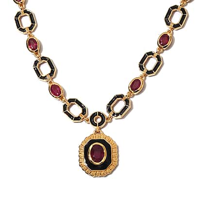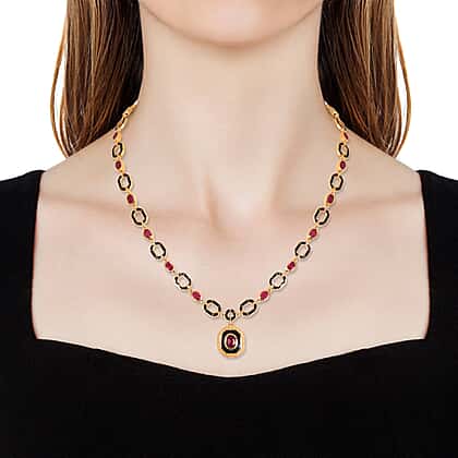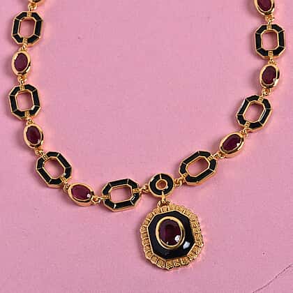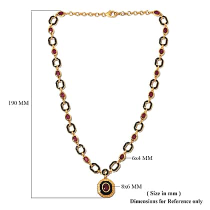 Designer -African Ruby Enamelled Necklace (Size 18) in 14K Gold Overlay Sterling Silver 12.00 Ct, Silver wt 26.00 Gms
