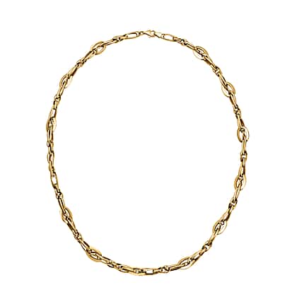 Uplift your personality and support your boldness with this fancy yellow-gold necklace alone or with other chains. This necklace's solid charm will style your daily wear and grace your formal and party wear. Crafted using magnificent 9K yellow gold, this necklace feature interconnection of vivid shapes and sizes of gold links, forming a unique design that everyone will covet. The strength of this chain necklace can easily hold your heavy pendants. Get this now and be amazing forever.