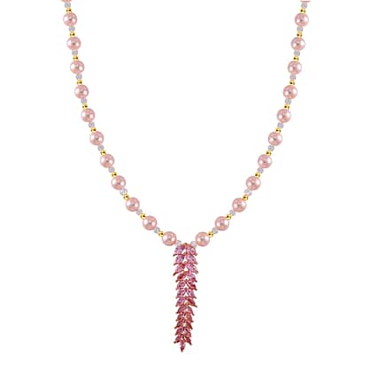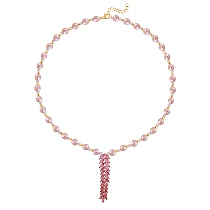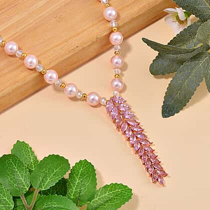 Designer Closeout - Pink Colour Shell Pearl, Pink Cubic Zirconia and Mystic Crystal Necklace (Size 20-22)