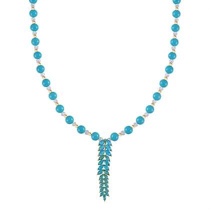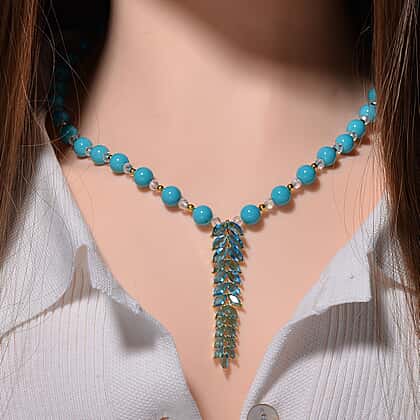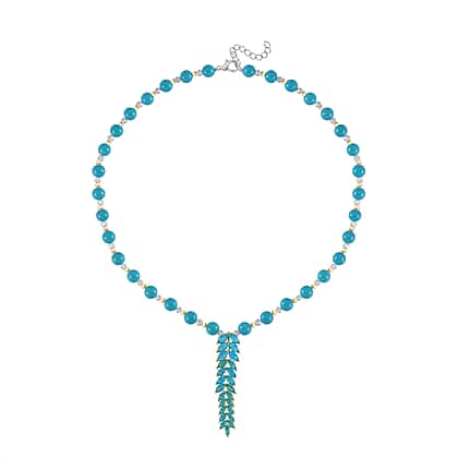 Add a touch of magic to your look with this Sleeping Beauty Howlite, Blue Cubic Zirconia & Mystic Crystal Necklace (Size 20-22). Its lariat-style design features a Y-shaped necklace studded with alternating beads of White Mystic Color Glass and Sleeping Beauty Howlite. The lariat drop beneath is studded with Blue Cubic Zirconia stones that emit an ethereal sparkle.
