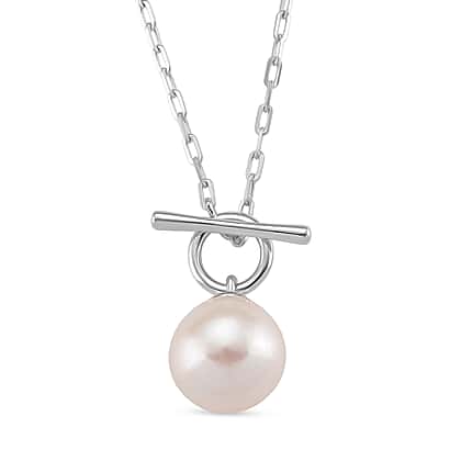 Designer Inspired - D'joy Edison Pearl Necklace (Size 18) with T-Bar Clasp in Rhodium Overlay Sterling Silver 13.39 Ct.