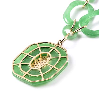 87 Carat Green Jade and Cambodian Zircon Necklace 20 Inch in Yellow Gold Plated Sterling Silver