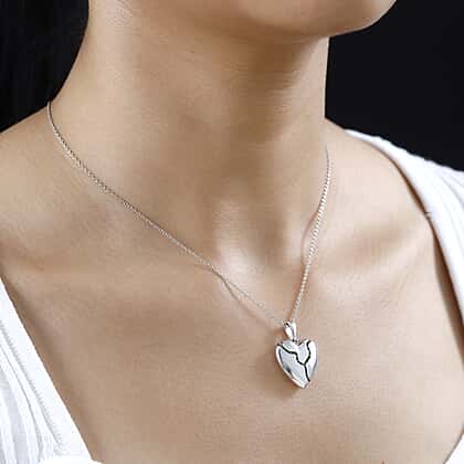This unique heart-shaped pendant, featuring a ‘broken heart’ design with natural chrome diopsides sets a dramatic and environmentally conscious statement. Crafted in sterling silver with a platinum overlay for added durability and shine, this piece reflects a commitment to sustainable luxury. The intricate design and vibrant green hue of the diopside make this pendant an eye-catching accessory for any eco-aware fashionista looking to add a touch of nature-inspired beauty to her ensemble.
