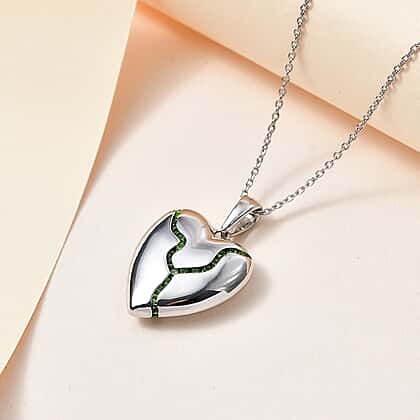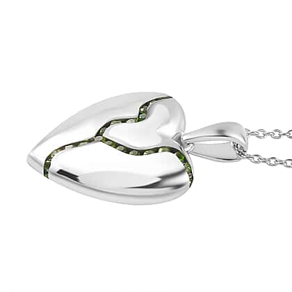 Designer Inspired - Natural Chrome Diopside Heart Pendant (Size 20) in Platinum Overlay Sterling Silver